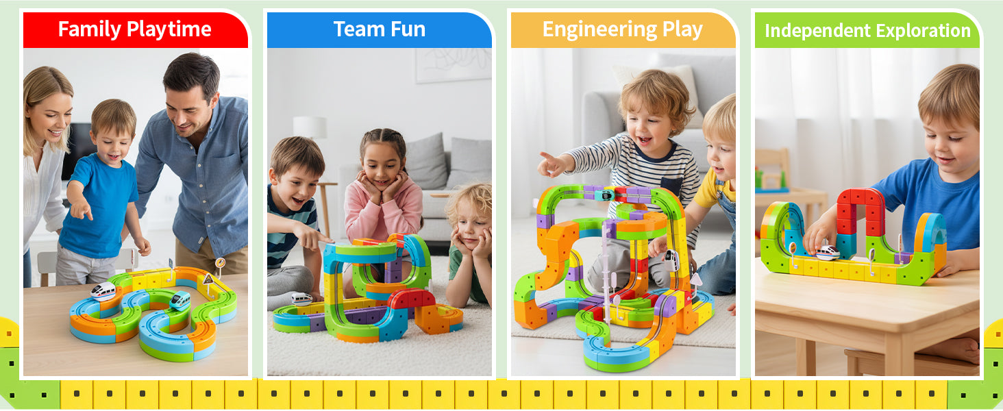 Our DIY Magic Track Train provides a screen-free, hands-on experience that sparks curiosity, boosts creativity, and encourages active learning. As children assemble the tracks, they develop fine motor skills, cognitive abilities, and problem-solving skills, all while having fun building their own miniature train world.